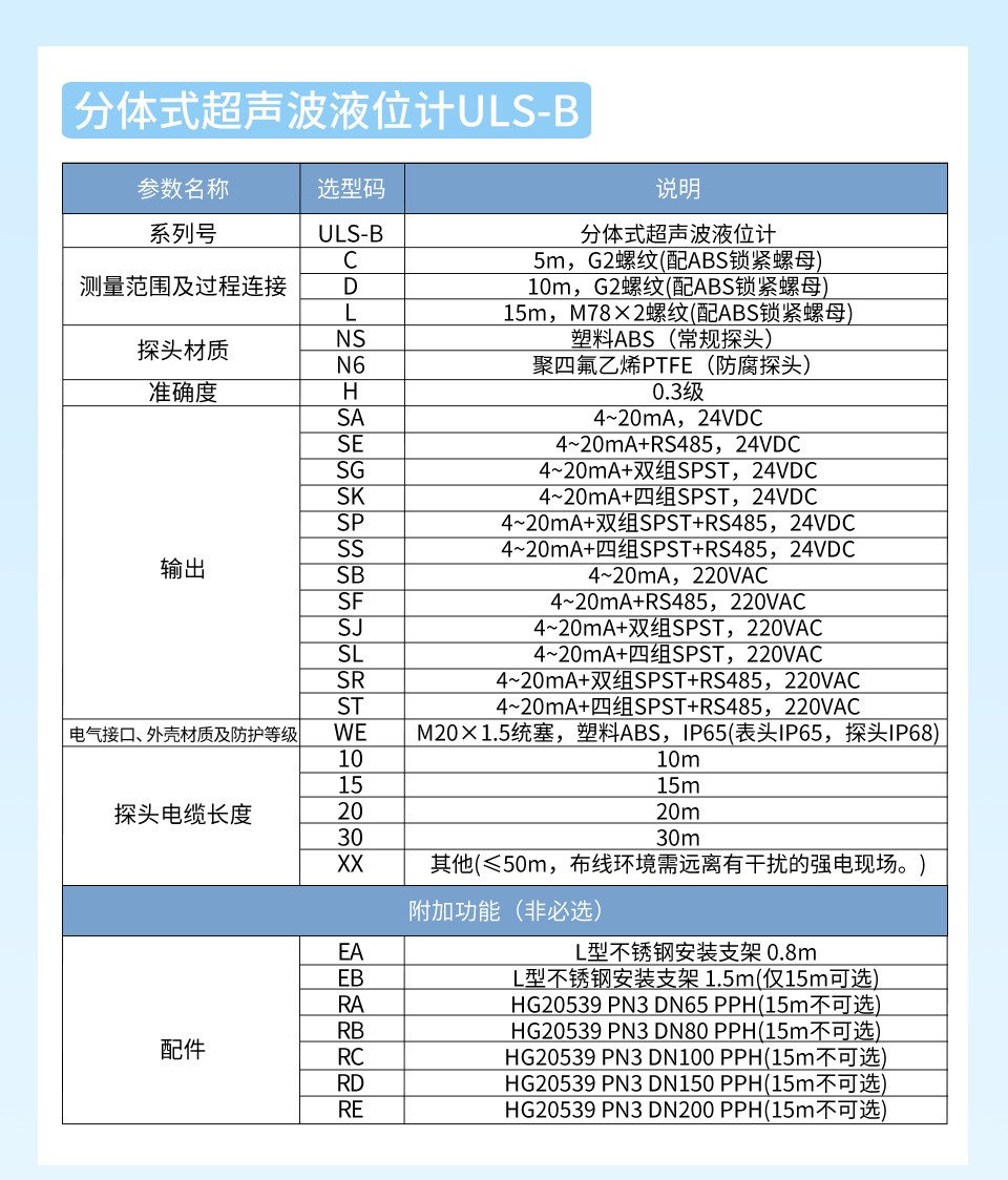 联测_SIN-ULS-B_0.3%精度分体式超声波液位计_