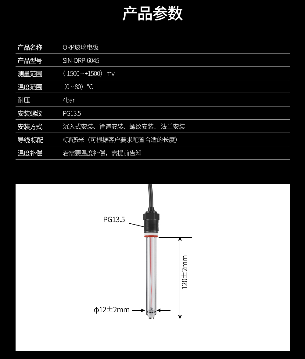 ORP 玻璃电极是我公司生产的一款性价比高的模拟信号 ORP 电极,该电极具有良好的稳定性和较长的使用寿命,能与各种国产或者进口仪表兼容匹配。广泛应用 于各种场合的 ORP 测量。CN1