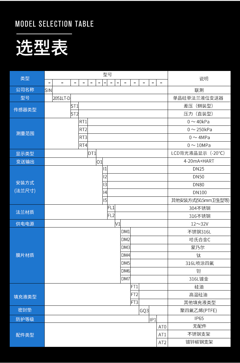 联测_SIN-2051LT-D单晶硅单法兰液位变送器 敞口罐 液体 _