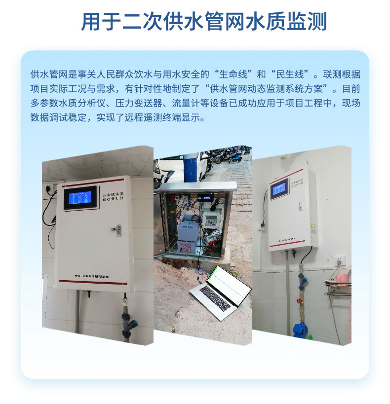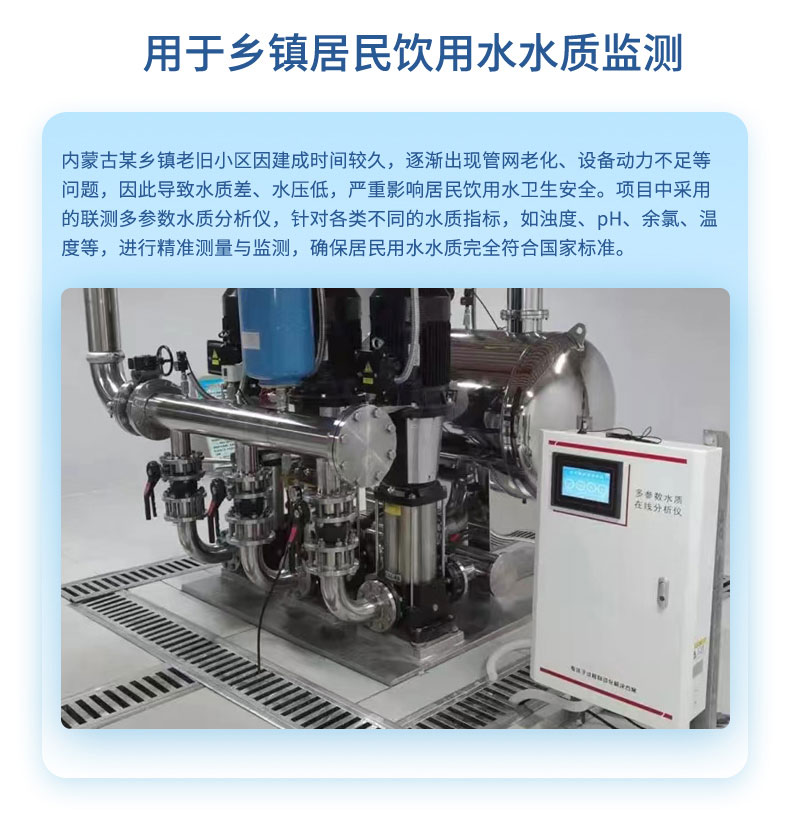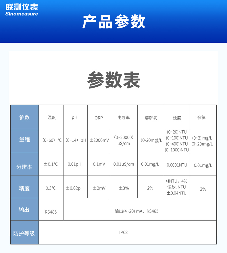 监测参数:浊度、余氯、pH、温度、电导率、溶解氧、ORP等