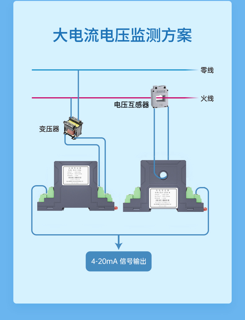电压变送器是一种将被测交流电压/直流电压转换成按线性比例输出直流电压或直流电流并隔离输出模拟信号或数字信号的装置。