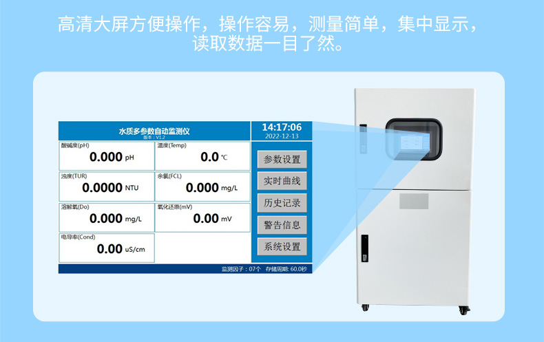 监测参数:浊度、余氯、pH、温度、电导率、溶解氧、ORP等