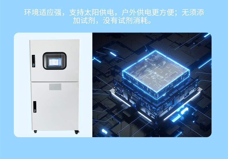 一套系统可测量多种水质参数,测量参数可选,精度高,重复性好,传感器可任意组合。安装简单易行,维护方便,无须添加试剂。没有试剂消耗不会产生二次污染、无废液,在一定范围内对电极进行温度补偿,多种输出方式可选(模拟量(4~20)mA,RS485,以太网口)