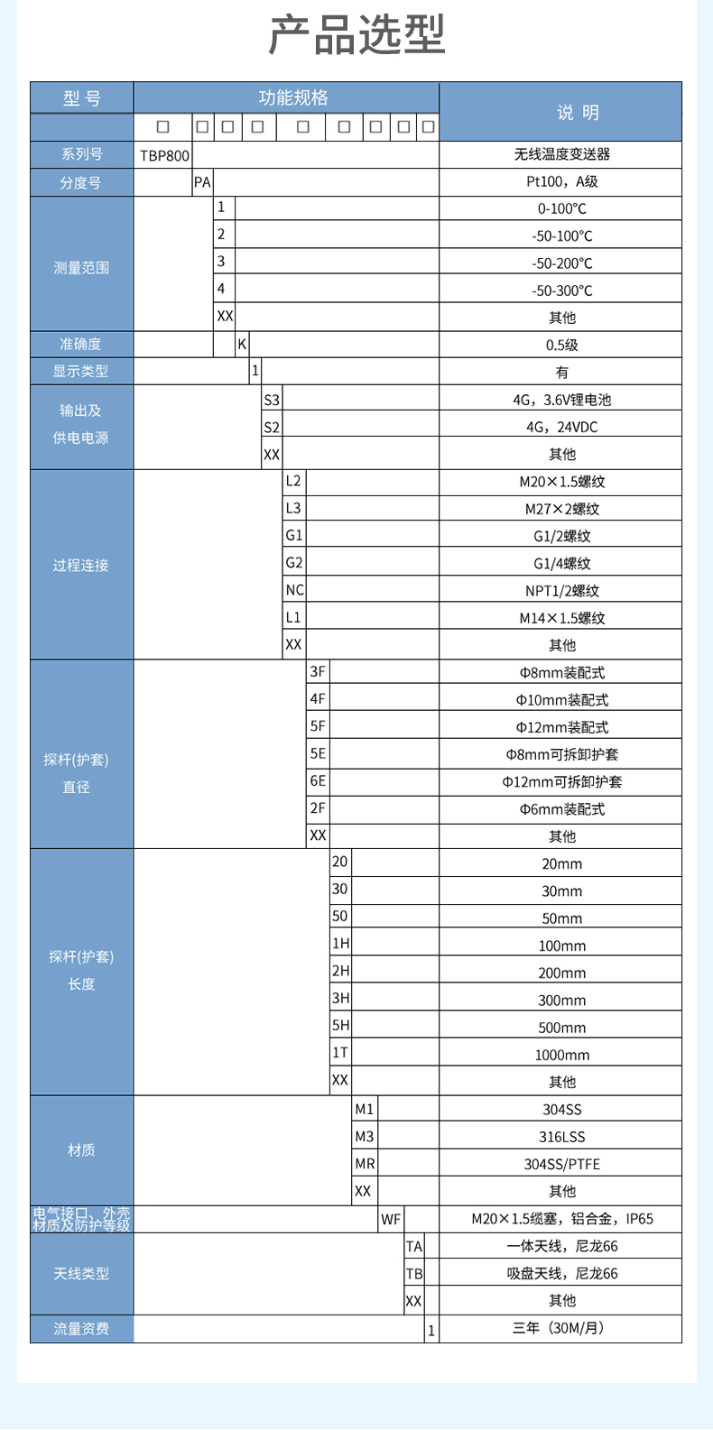 测量范围 (-50~400)℃准确度 0.5%F.S工作环境温度:(-30~70)℃防护等级 IP67