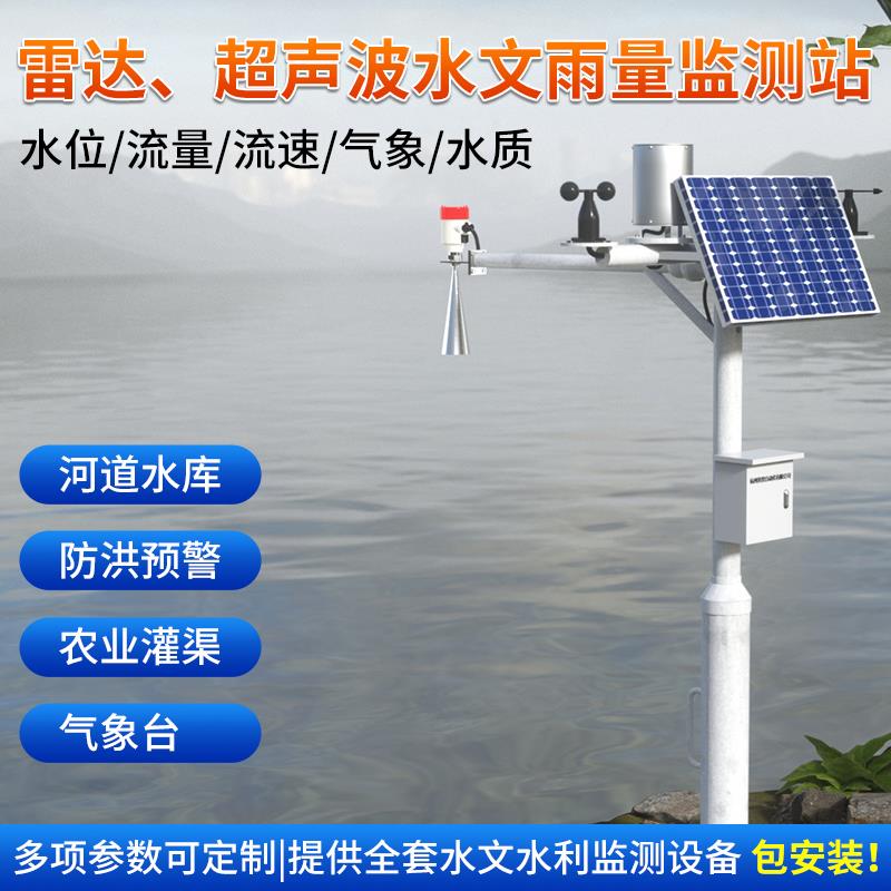 雷达超声波液位计水文监测站,城市道路涵洞水位监测、防洪预警、;户外降雨量、水位、气象、河道流量流速监测,农业气象监测;多参数可定制,提供全套水文监测设备