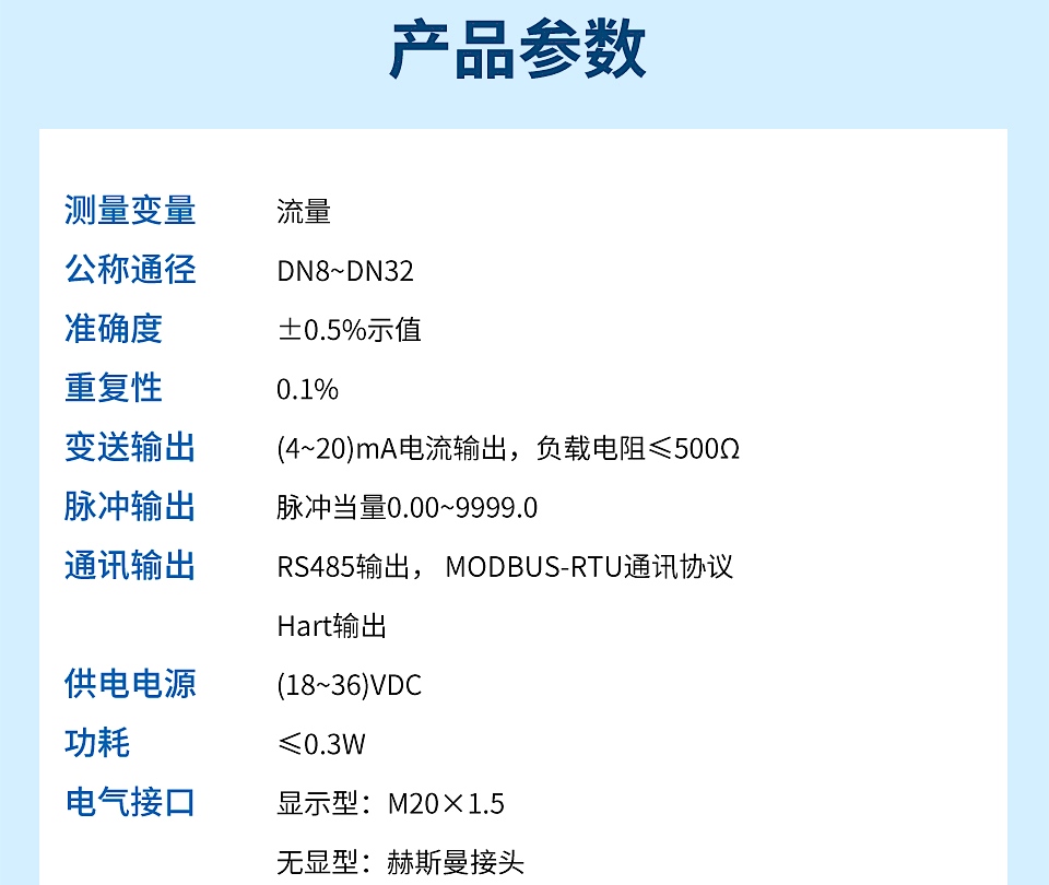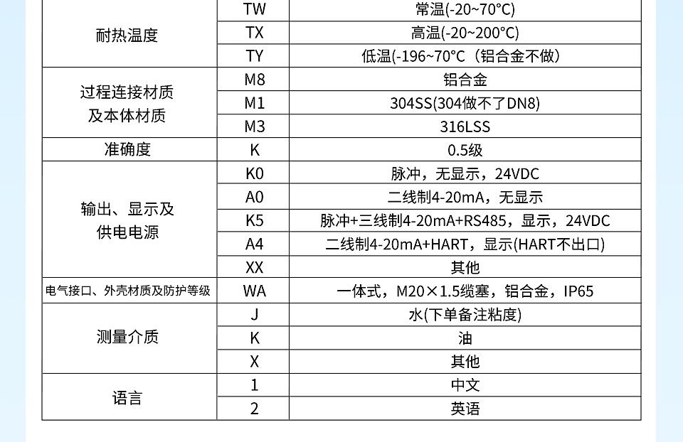 通讯输出:RS485 输出,MODBUS-RTU 通讯协议,Hart 输出