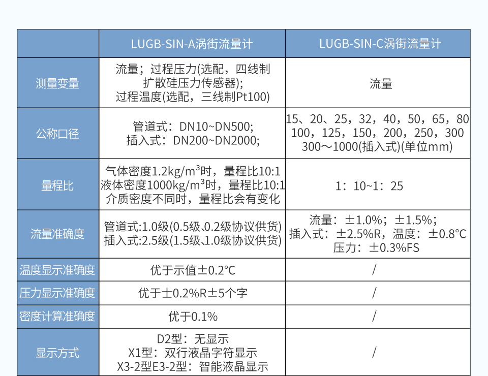 LUGB型涡街流量计是速度式流量计的一种,基于卡门(Karman)旋涡原理研究设计的,主要用于工业管道中介质流体的流量测量,如:气体、蒸汽或液体等多种介质的流量控制和计量。常规款、温压补偿款、法兰款、法兰夹持款基础四款可选,适用于大部分场合,如楼宇供热、纺织印染等