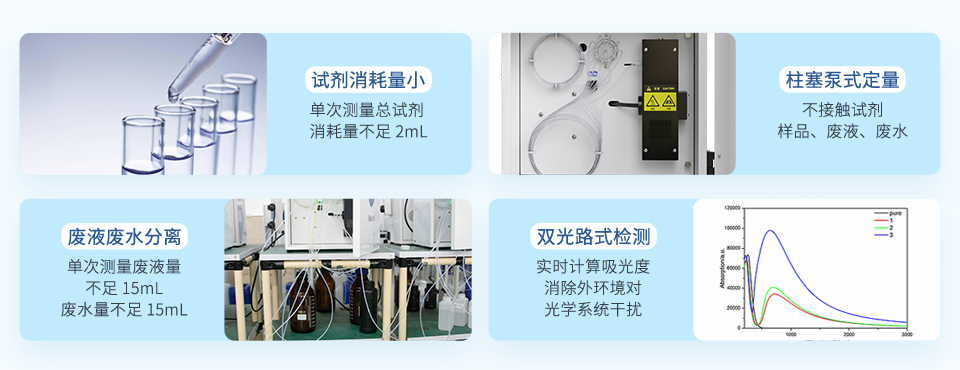 产品特点:试剂消耗量小、缺液检测报警、废液废水分离