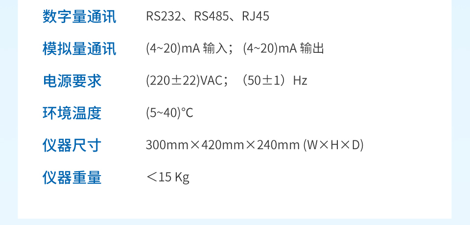 常规量程:(0~0.5 / 2 / 5 / 10 / 20)mg/L示值误差:±10%最小维护周期:≥168 h/次