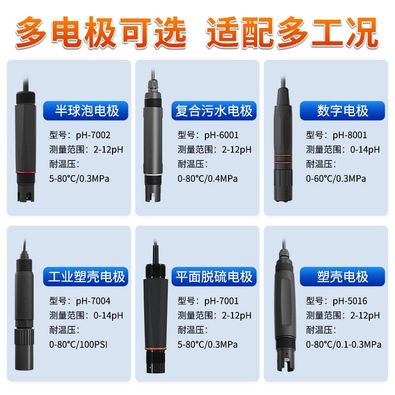 产品特点:结构小巧、安装方便;抗干扰能力强;自动温度补偿/手动温度补偿;支持 USA/NIST/自定义 pH 校准溶液校准;RS485 接口,支持 Modbus RTU 协议
