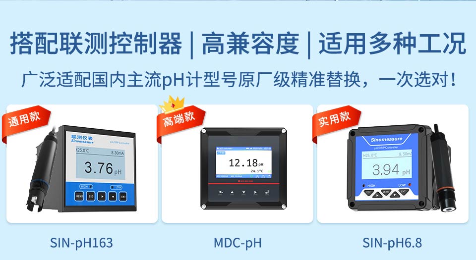 pH 电极测量原理为电化学法,原电池原理。原电池是一个系统,它的作用是使化学能量转成为电能。此电池的电压被称为电动势(EMF)。此电动势(EMF)由二个半电池构成。其中一个半电池称作测量电池,它的电位与特定的离子活度有关;另一个半电池为参比半电池,通常称作参比电极,它一般是与测量溶液相通,并且与测量仪表相连。通过电极内部原电池反应产生的电势差,传递到 pH 控制器,对应算法变送显示 pH 值。