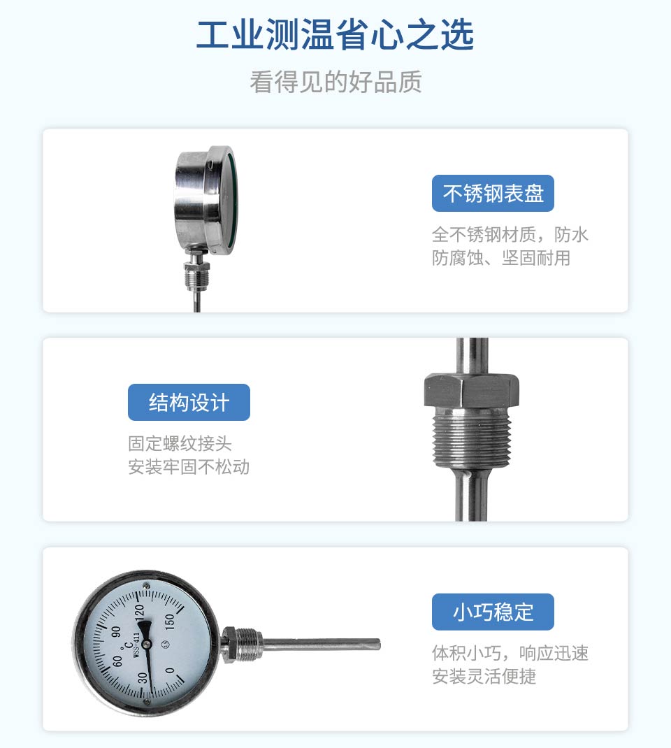 杭州联测仪表专业生产不锈钢径向、轴向、万向工业用双金属温度计可用于窑炉、烤箱、管道,测量气体、液体、蒸汽的温度;咨询热线:400-185-1718