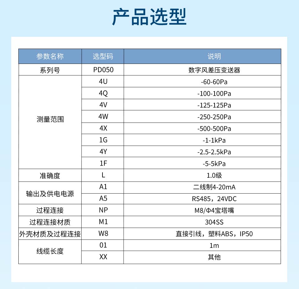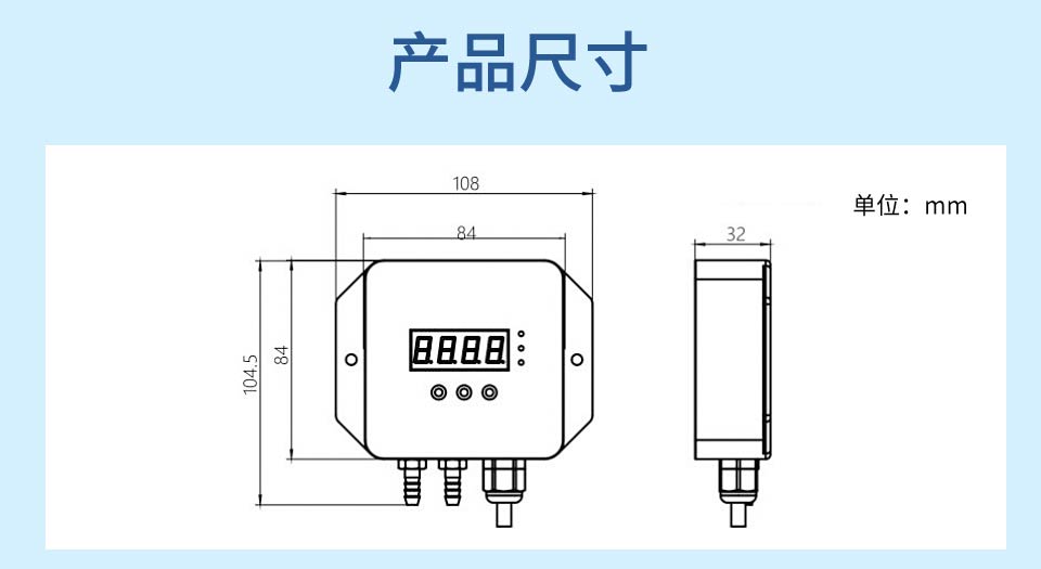 产品特点:采用原装进口差压传感器,精度高,稳定性好;支持多种功能:单位切换、满度修正和零位屏;支持(4~20)mA、RS485 输出