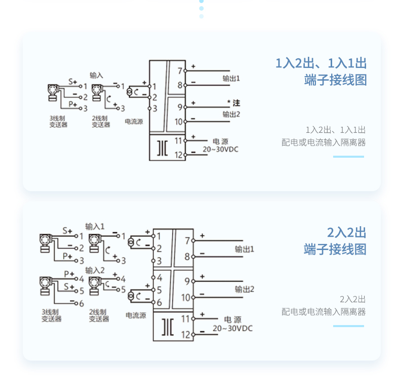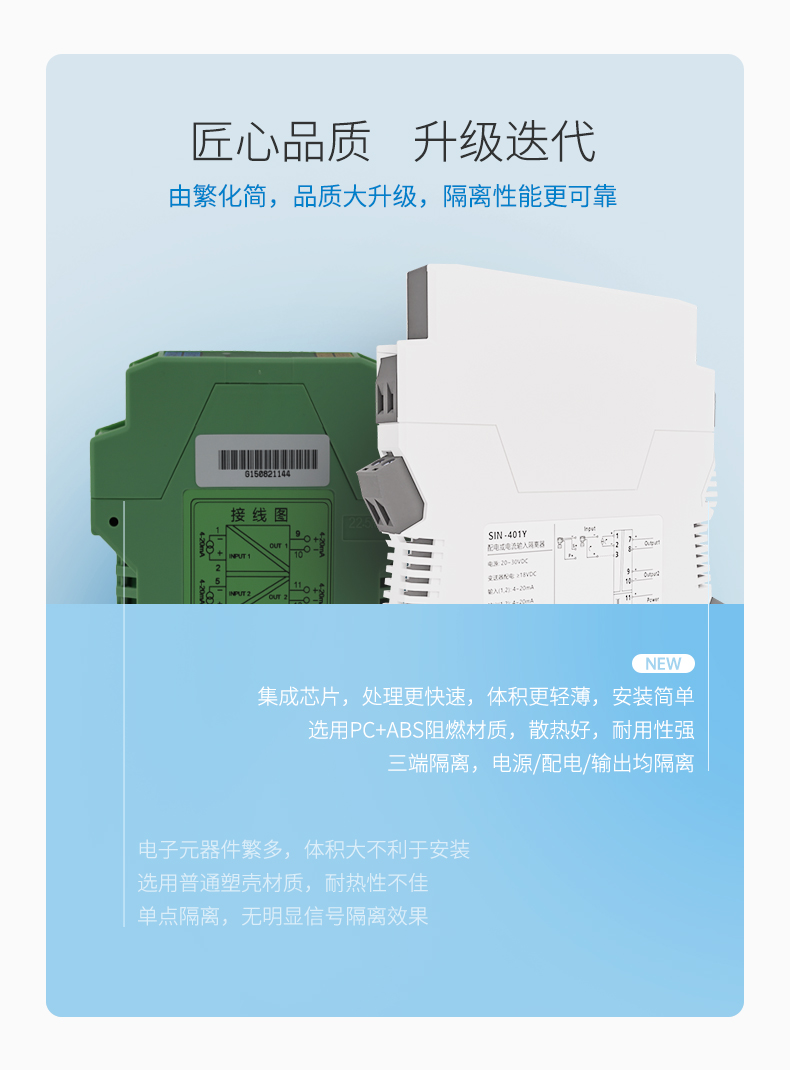 信号隔离器是一种信号隔离装置,将输入单路或双路电流或电压信号,变送输出隔离的单路或双路线性的电流或电压信号,并提高输入、输出、电源之间的电气隔离性能。