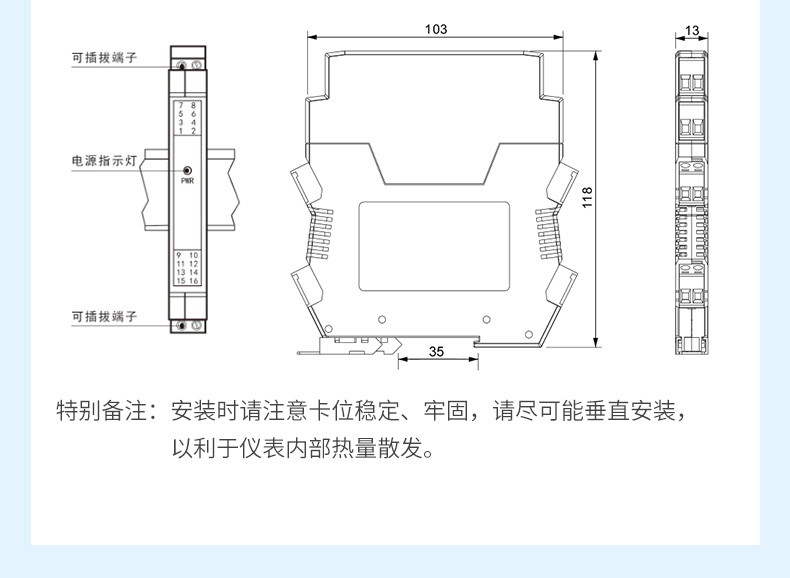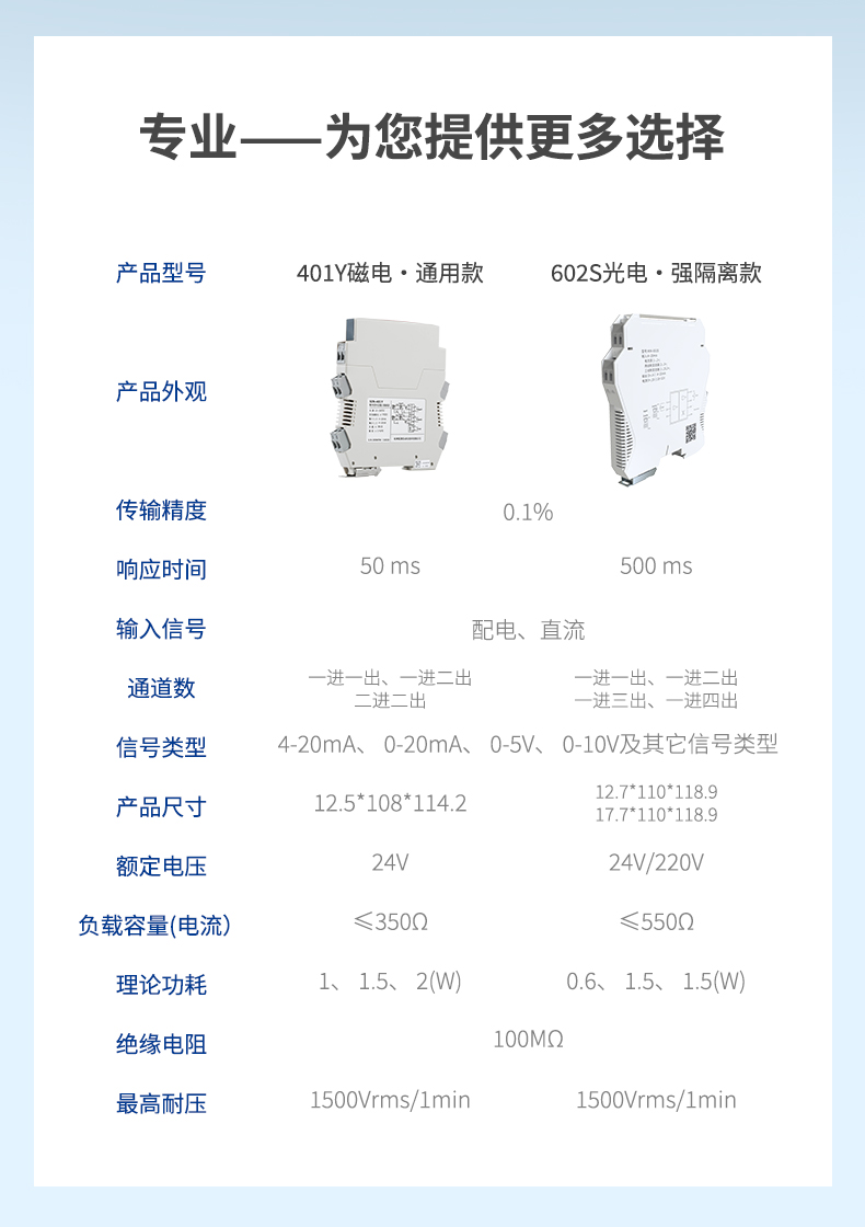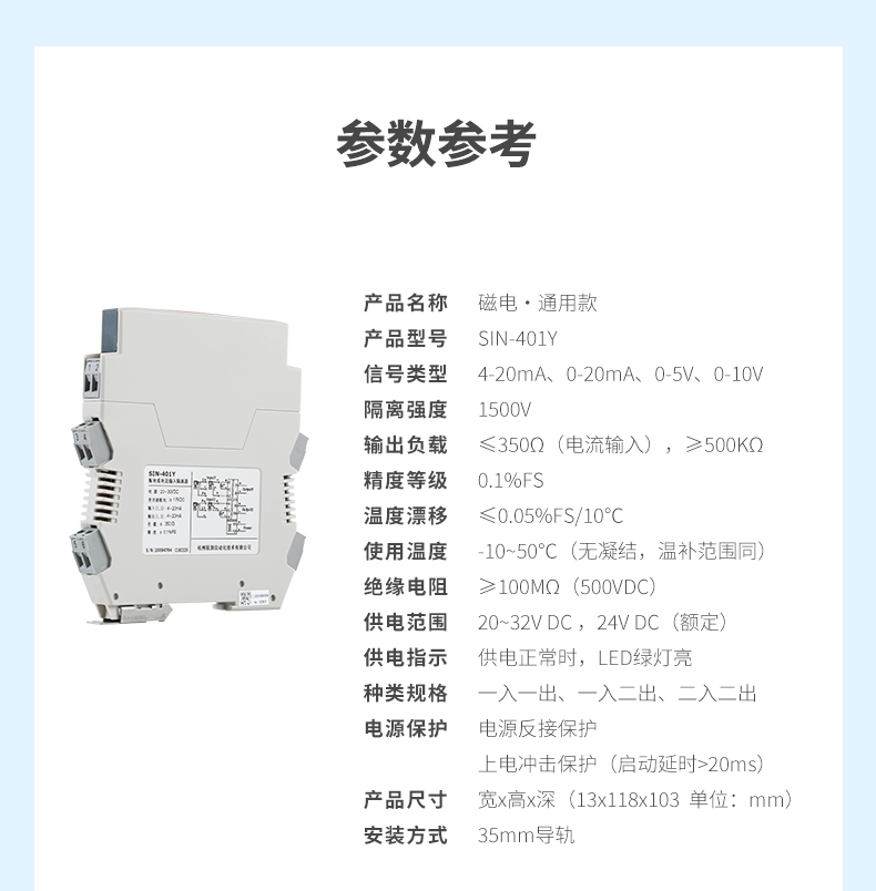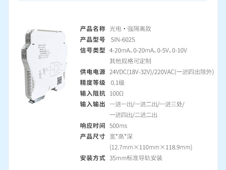 测量精度:0.1%精度 输出信号:4-20ma、0-10V等信号安装方式:35mm标准导轨、螺钉安装等