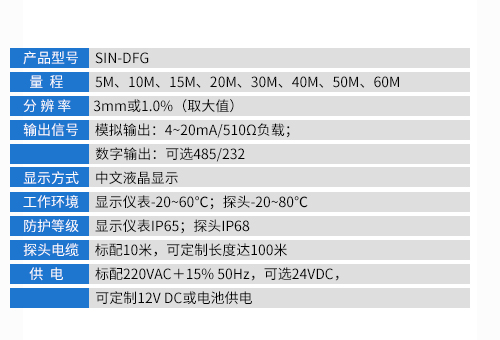 水库的液位和体积测量,也可用于明渠的流量测量。